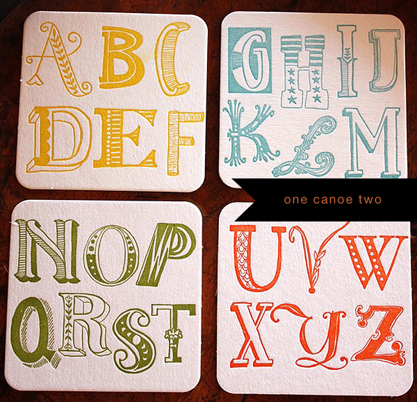 Letterpress coaster ~ One Canoe Two