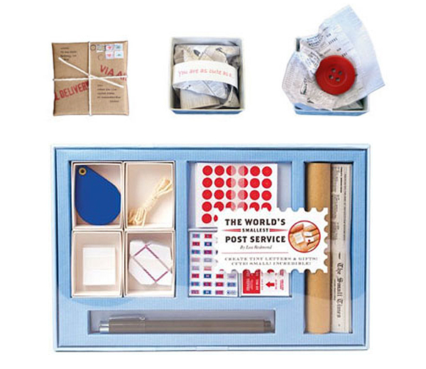 Proprietor, Lea Redmond also offers customizable Tiny Letters which allow you to write your own text for a mini letter. The letters are folded in mini-envelopes with mini stamps and sealing wax and mailed along with a magnifying glass. AND they also teamed up with Chronicle Books to create the DIY Tiny Mail Stationery Kit above. So clever!