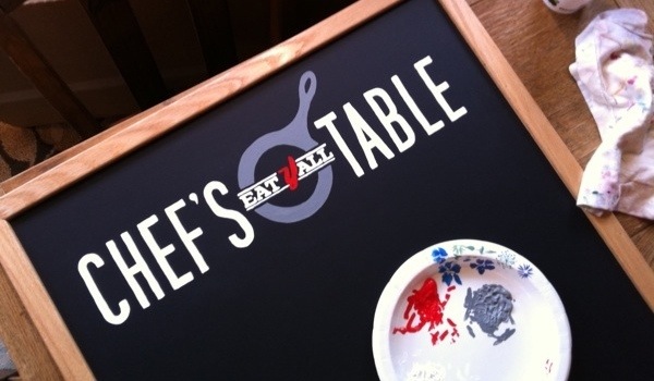 One of my monthly clients, Eat Cities, LLC, launched a new brand and online magazine at the beginning of January called Eat Y’all. A year in the making, the project aims to showcase food in the South as only Southerners can through great editorial content, the creation of food trails, and the production of exclusive Chef’s Table events giving diners the opportunity to interact with regional chefs. Yum! I’ve had the opportunity to work with Eat Y’all on their branding and marketing, which will soon include a new website. As part of their ongoing Chef’s Table series, they asked me to paint the logo on chalkboards to be used at the events. It was a fitting project for a Friday last week, and I thought I would share the process. Enjoy a peek! And, watch for details about Chef’s Table events in your region of the South. It’s an intimate Southern food experience you won’t want to miss!