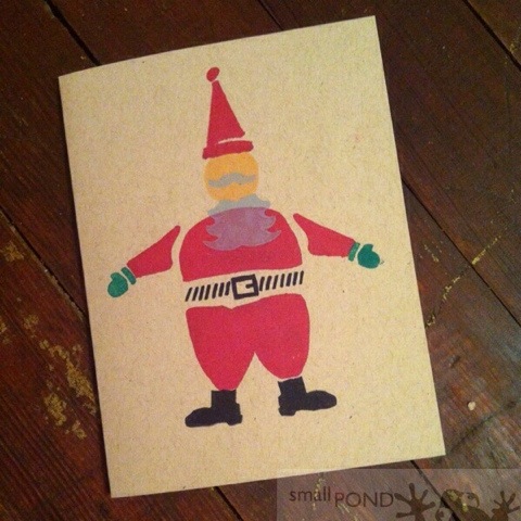 One of the stamp sets in the collection we’ve been playing with is one called “Saint Nick.” The set includes all the “parts” needed to make the funny Santa shown below. I’ve also been experimenting with some patterns and cards using his hat and beard. Enjoy!