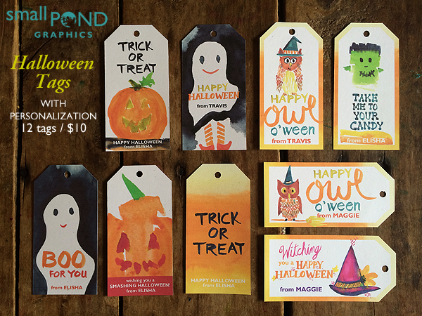 I’ve been having some fun getting into the Autumn spirit over the last week, and I’m excited to share some new Halloween tags available with personalization! The tags can be printed with your preferred name and are $10 for a set of 12 — just pick one design or an assortment! See individual images of each tag below. You can order by sending me a message with your PayPal email address (for invoicing), your personalization text and the breakdown of your design/quantities.