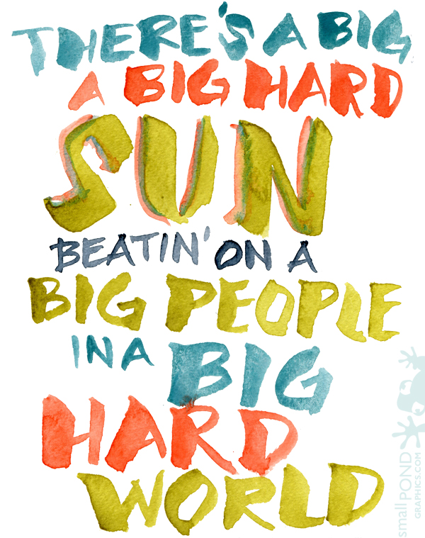 Well, my kids are just a few hours away from having the first week of school under their belts for 2015! We’re excited about the new year ahead, and each of them are enjoying their new classrooms and schools. I guess I’m also getting back to some routines after the fun of the summer and the joy of a more relaxed (and kid-punctuated) schedule. Aside from a couple of client illustration projects, I took pretty much a complete break from watercolor this summer. I took some time to focus on new block printing, get back to a little drawing and doodling, and also just slow down the creative process. It was a nice break and shift of media that sometimes adds a freshness to the creative process. This morning, I picked up the watercolors again for lettering practice. I’m a little rusty, but Eddie Vedder helps to prime the pump!