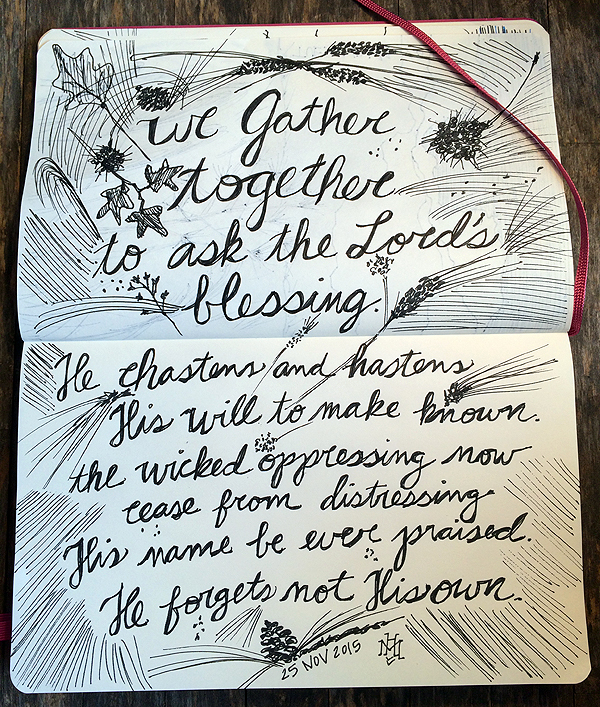 [My 11×14 sketchbook gives me a little room to work more on composition with some of my lettering practice — an area I think I needs work!]