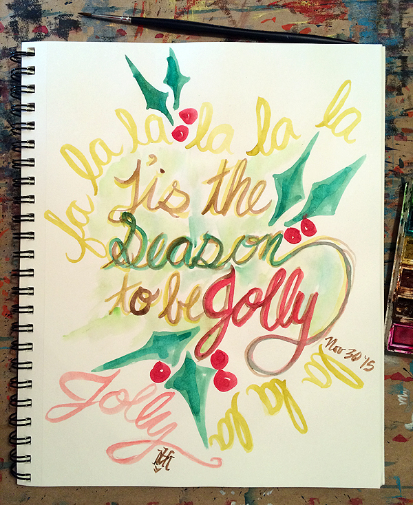 I’m trying to get back into the routine of drawing or painting each day — at least each work day. I guess the holidays aren’t necessarily the best time to begin or renew habits because our days tend to be prone to extra craziness this time of year. But, early decorating escapades around our house, the excitement of my children’s smiles, and some great wisdom I read during the Thanksgiving break from The Artisan Soul by Erwin McManus have me unusually motivated this week. ‘Tis the season to be jolly!