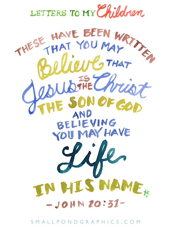 I finally painted an alternate heading for this series for those days (like today) when my words are to both my sons and daughter. It’s holy week, and we’re beginning to read about Easter and think about the meaning of it. This Bible verse is the last page of an Easter picture book we read each year. To me, it summarizes the purpose of God’s word and a good reminder of the “why” that must exist behind so much of what we do as people of faith. As I’m trying to help my children ingrain some of those words and beliefs in their hearts, I want them to know that living out their own truths begins and ends with this one sacred truth.