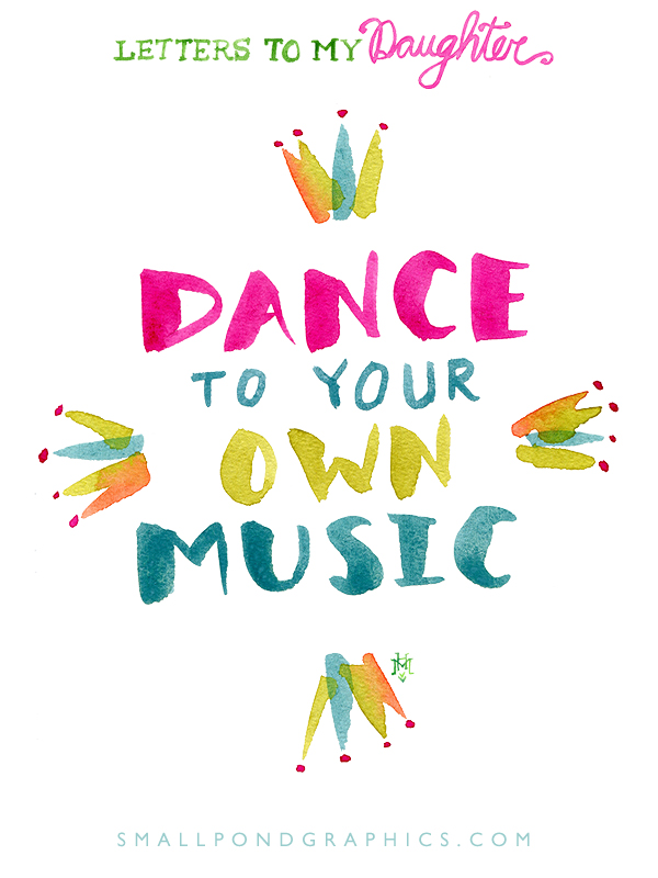 I loved that a non-traditional performance like this (absent of the frilly tutus Baby Girl loves about her own ballet performances) could provoke conversations with all three of my children. It was amazing to see the fresh eyes through which they viewed the performance. I’m so grateful we’ve had the chance to see this wonderful company perform several times. Today’s Letter to My Daughter was inspired by the unexpected combination of music of ballet traditions we saw last night. I want to encourage my kids (and myself) to have the courage to choreograph our daily dances to our own music — no matter how unexpected.