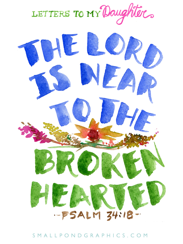 Today, I wanted to paint “I’m so glad God gave you to me.” Because I am. I’m eternally grateful. But I couldn’t paint it today because I’m so mindful that sometimes people long for the gift of children they don’t have. Sometimes, I imagine it’s hard to hear about daughters. Today, my gratitude for the exquisite privilege of being mother to these little loves is mixed with the burden of sorrow for friends who are working through the heartbreak of losing that opportunity. And this letter came to mind. It’s a letter of truth. Of my own experiences in different ways. And, a letter in waiting for a time one day when I’ll want to share it with my Baby Girl. When the story didn’t end in the way she’d hoped. When she’ll need to see for herself how a loving God draws near to the broken hearted.