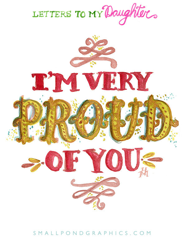 I’ve been writing these “letters” to my daughter (and my sons too) for a few weeks now, and I’m enjoying having a theme for my practice in painting and lettering. I started out showing the “pictures” to Baby Girl. Not every day, but as I remembered. And, now every so often, she asks me, “did you paint today?” It means a lot to me for her to know that I’m thinking about her and creating something for her. And, I’ve been able to show some to the boys and let them know, “this is for you — and Baby Girl.” They sometimes recognize the circumstances that prompted the messages, and sometimes they recognize them for what they are — just Mommy being crazy again. As I look inside at my own process, I realize that this is a treasured exercise. It can’t help but be intentional because I have to think about what to paint. Sometimes it’s spontaneous, and sometimes I’ve recognized in the thick of an experience or conversation with the children that a thought should become a “letter.” Some days, like today, have started more as a chore. Like all habits you’re trying to form, some days you begin just because you said you would or because some little soul might ask you about it later.