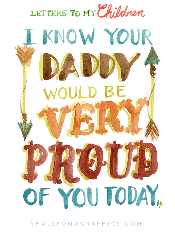 I wonder if they need to hear this. I’m certain they do. And I often grieve that I’m the one they hear it from. In these words… “would be.” I stay awake at nights sometimes wondering if they have this sense of void. The unfilled space in their hearts where a Daddy would fill. I wonder how much they remember. And if in their memories, they hear the words. I wonder if my saying them is a poor substitute. Or if it can somehow reach in and touch the gap.