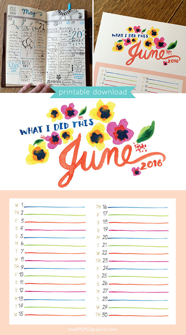 In that spirit, I put together a little printable calendar for June called “What I Did This June.” Instead of the traditional calendar layout, it has a place to write at least one memorable or ordinary thing for each day. I hope you enjoy the chance to capture your moments!