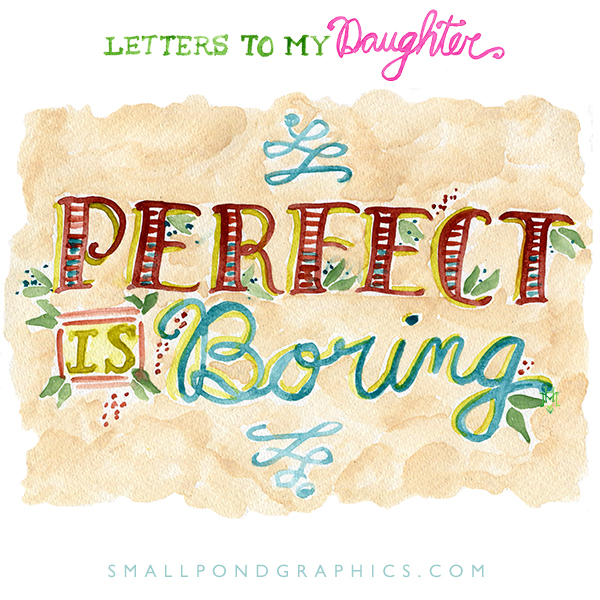 I hate it when I see Baby Girl shy away from finishing something or decide to put an activity aside because she’s told herself that it isn’t perfect or that some part of it is “messed up.” Not long ago, she was telling me about one of her ideas for an art project, and somewhere in the conversation I heard that self-doubt creep in… “I know it won’t be perfect, but…” That but, which relegates her amazing thoughts to something less than the unique and wonderful creations they are. I told her, as I have to tell myself almost everyday. Perfect is boring. The more interesting pursuit is toward what makes each of use so incredibly unique and special in this world. It’s a good reminder again today.