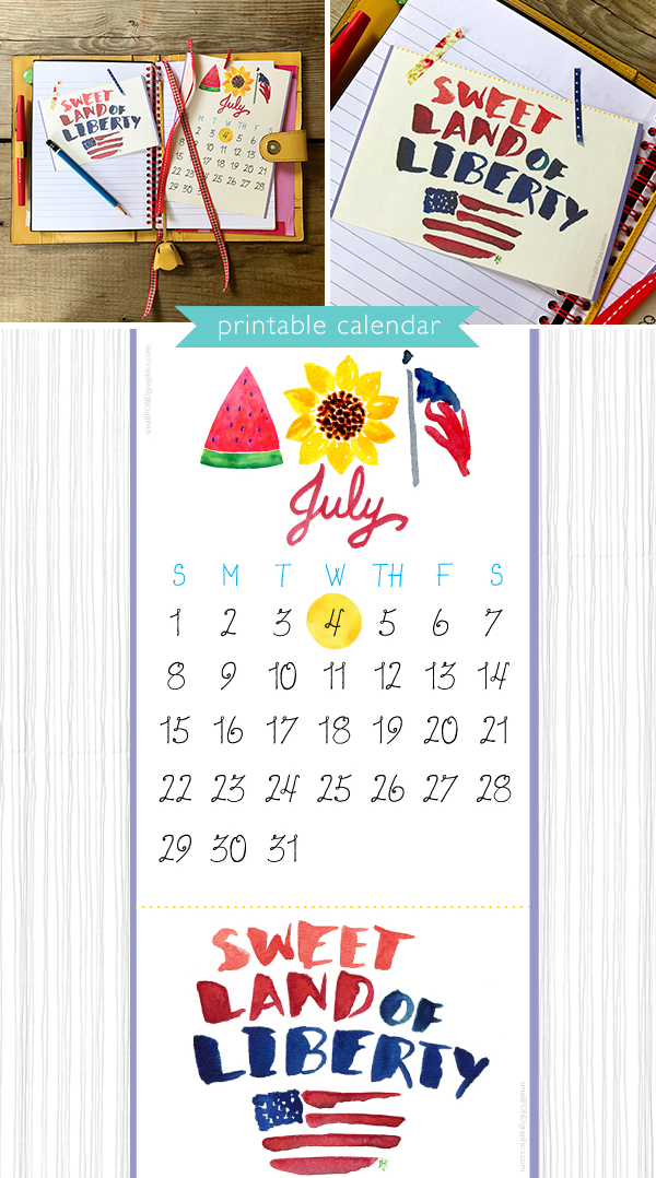 July is here, and my crew and I made it home from our annual beach trip just in time to celebrate! It’s sweltering outside, but this month is such a sweet time to celebrate liberty and the second half of our summer vacation with new adventures. We’re intent on making the most of these last few weeks before school cranks up again. Outdoor fun, flowers in season, fresh eats, and remembering the freedoms we are so fortunate to call our own… I hope this month’s printable calendar reminds you of all those blessings.
